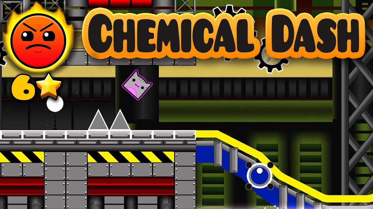The player in Geometry Dash Chemical Dash must make their way through a number of challenging levels chock-full of monsters and obstacles. The game's mechanics are straightforward but powerful. Throughout each level, the player controls a little square character known as a "cube." The cube can avoid spikes, pits, and other obstacles while jumping, flying, and passing through some objects. As the player advances, levels get harder and harder to pass, demanding fast reflexes and cunning planning.