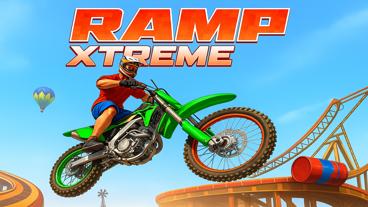 Ramp Xtreme builds its mechanics around the continuous movement of ramps, narrow platforms and distances that change from level to level. The bike accelerates to create momentum, then the player adjusts the tilt to keep the direction on the trajectory. The rhythm of the track is formed by successive drops, requiring the player to observe the height of the slope as well as the landing point.