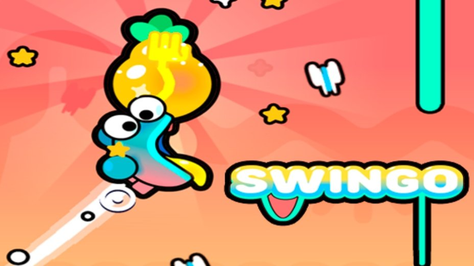 Swingo is an appealing video game featuring the breathtaking journeys of an adorable creature. You will control this small character to move across platforms, through the air, and use support tools to eat fresh fruit. Use the hook effectively to make smooth moves. Your character has the ability to move in any environment. As long as you can align your momentum shots correctly to successfully collect fruit, you will win.